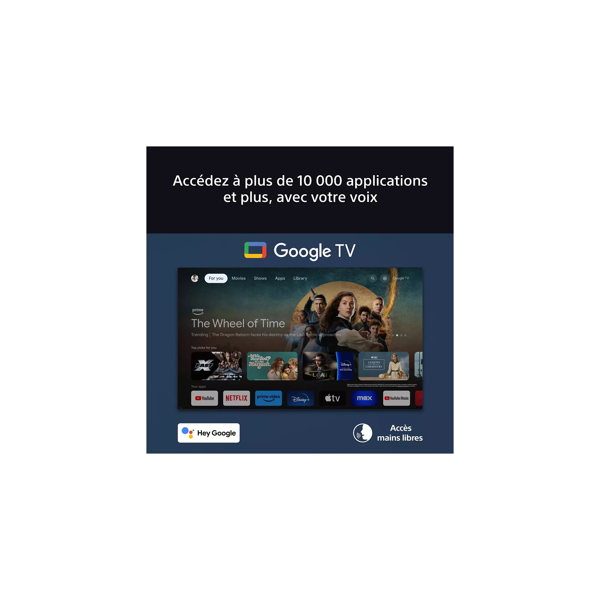 - Smart TV Google TV : accès facile aux applications, contenus et services.