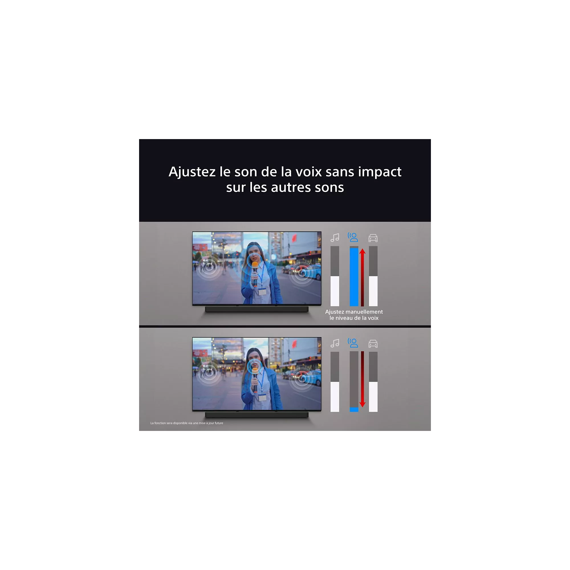 - Son immersif via Acoustic Surface : le son suit l’image, pour une immersion totale.